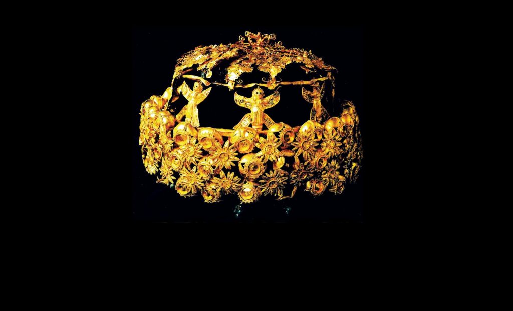 亚述王后陪葬冠饰,尼姆鲁德出土,现藏于伊拉克国家博物馆。
