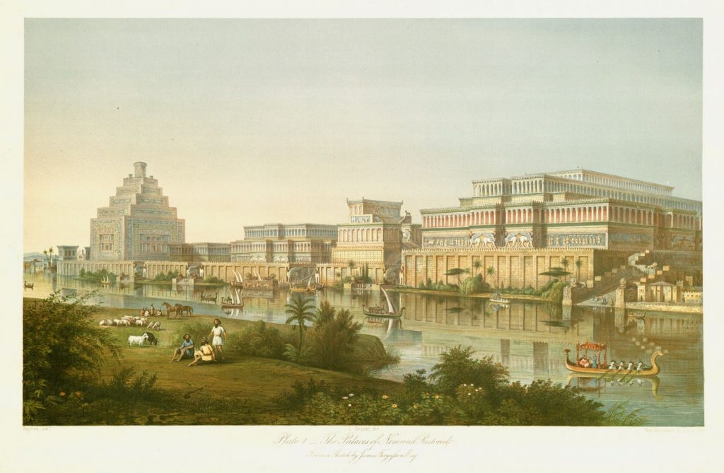 卡尔胡(尼姆鲁德)城复原图,摘自亨利·莱亚德《尼尼微的纪念碑》。