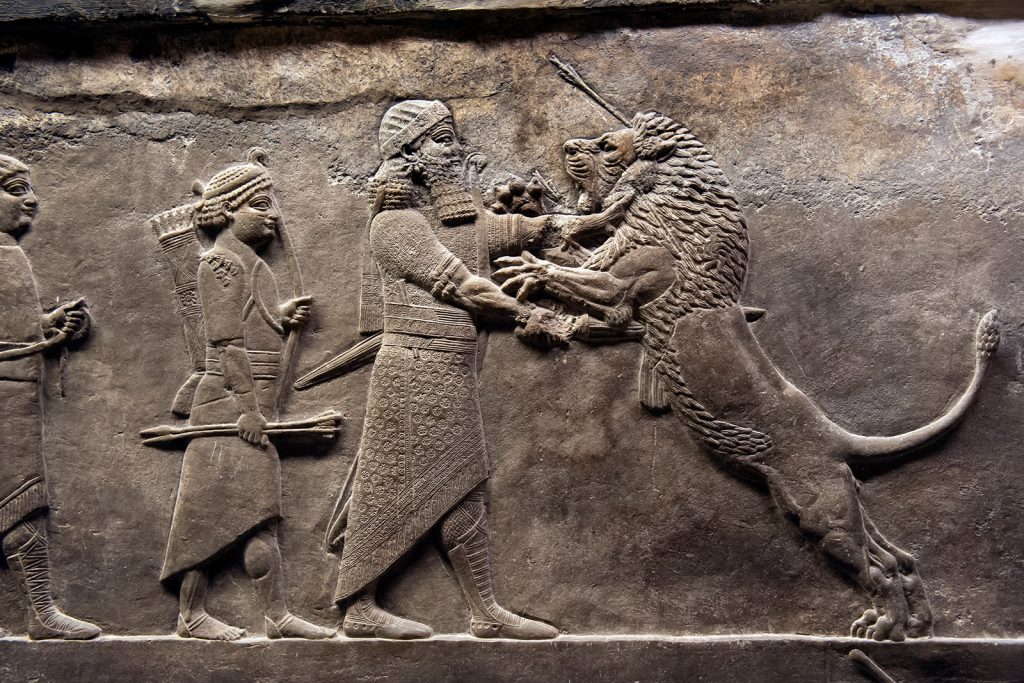 亚述巴尼拔猎狮浮雕板,出土于尼尼微,现藏于法国巴黎卢浮宫。
