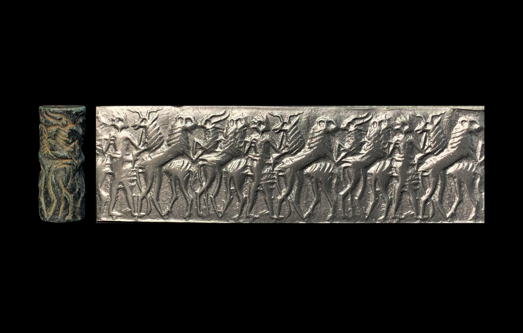 2. 两位英雄分别作为场景两端的连接,使滚印产生的纹饰具有循环无穷的连续感,充分体现了工匠的巧思;