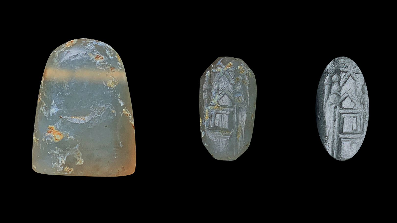 新巴比伦王国(约公元前626年~前539年)塔形平面印,印面呈拉长的八边形,印身塔形,侧壁陡峭,顶部呈圆弧。