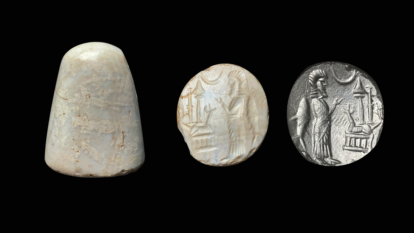 新巴比伦王国(约公元前626年~前539年)塔形平面印,印面呈椭圆形,印身塔形,侧壁略陡,顶部呈平整的圆弧。