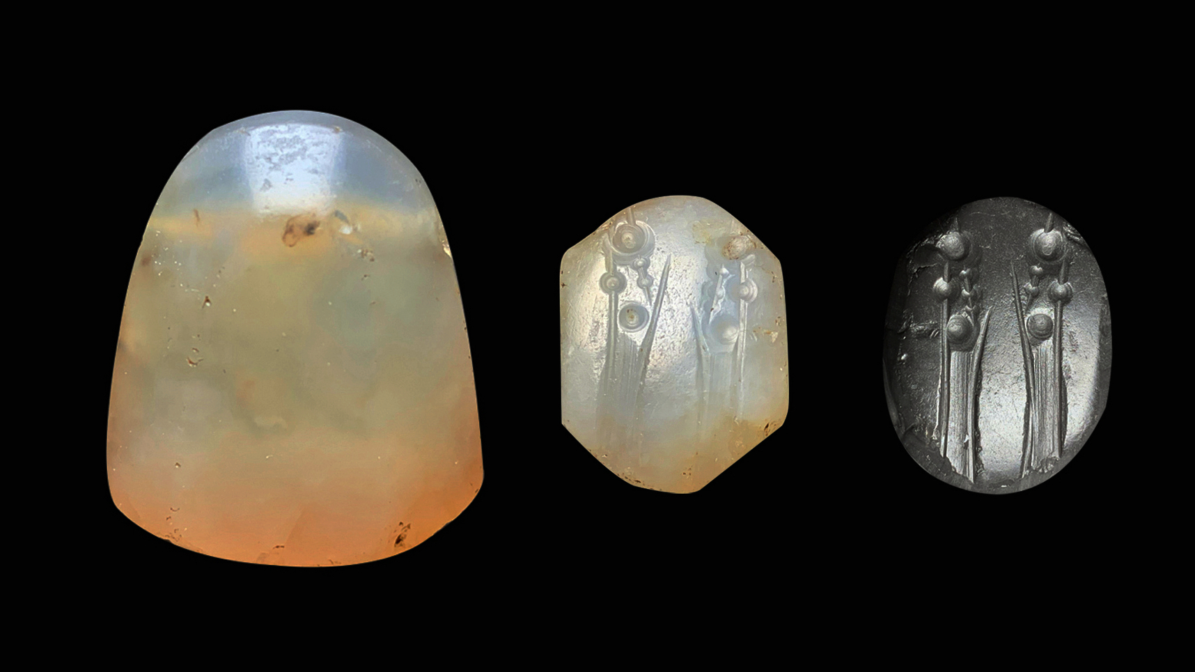 新巴比伦王国(约公元前626年~前539年)塔形平面印,印面呈拉长的六边形,印身塔形,侧壁略陡,顶部削尖。