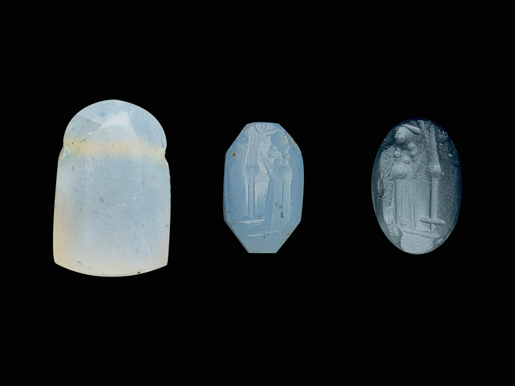 1. 新巴比伦时期流行的标准形制和题材,人物采用钻刻风格描绘,寥寥数刀,清晰干脆;