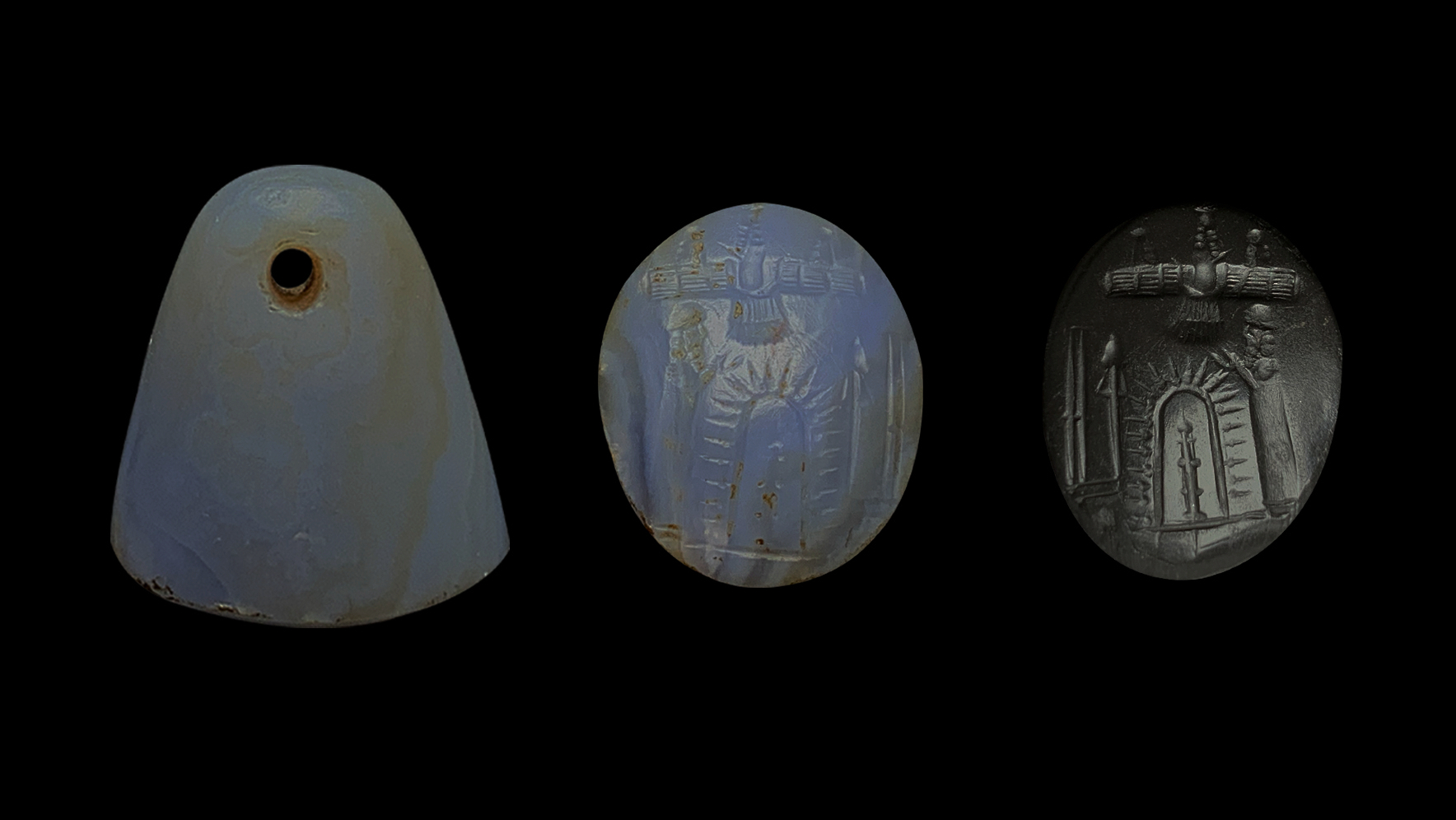 4. 亚述国王辛纳赫里布(公元前705年 – 前681年)在位时,企图融合亚述和巴比伦的宗教,并以阿舒尔作为新的两河流域万神殿的顶点,但在亚述巴尼拔即位后南北爆发内战,此后新巴比伦王国兴起,阿舒尔的崇拜衰落,这件塔形印的图像可能反映了这一特殊历史时期的宗教融合或其在宗教图像上的残余,是珍贵的历史见证;