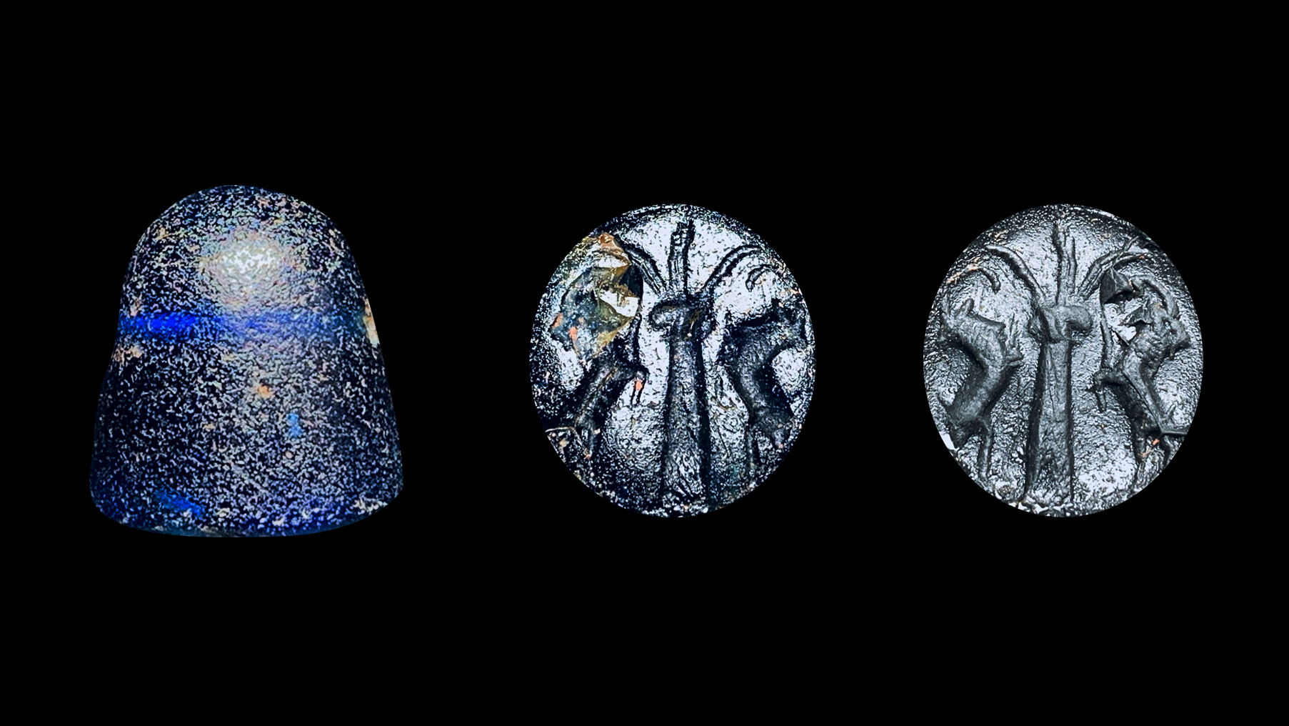 1. 阿契美尼德波斯帝国时期流行的标准形制,题材也为较经典的对称人物、动物题材,尤其枣椰树和羊在波斯帝国的核心地区以及地中海东部都有发现;