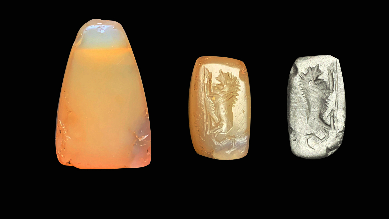 1. 新巴比伦时期流行的塔形印一直沿用至希腊化时期,塔克西拉等公元前后的遗址也有发现,是波斯印章艺术希腊化的特殊的产物,人物雕刻风格也体现出明显的希腊化影响,和罗马早期的工艺风格接近;