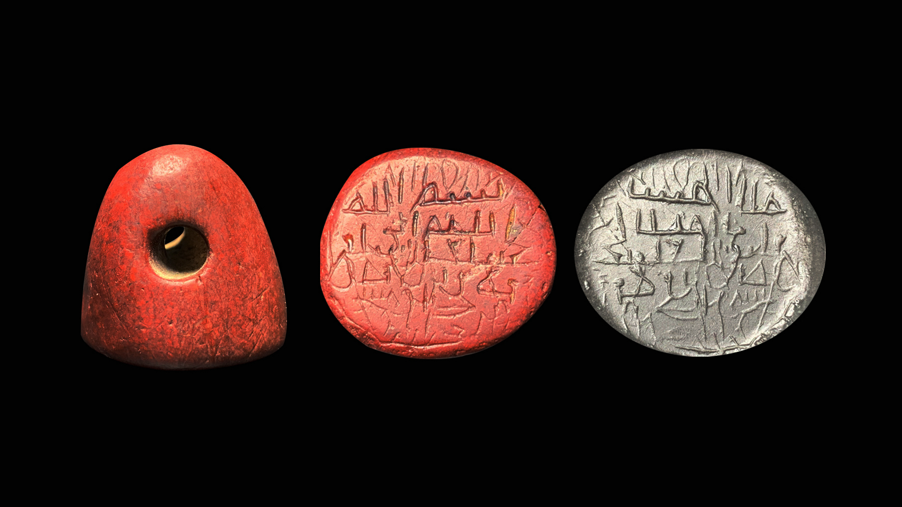 伊斯兰早期(约公元700年~1000年)塔形平面印,印面呈圆形,印身椭球形切面(也称棋子型)。